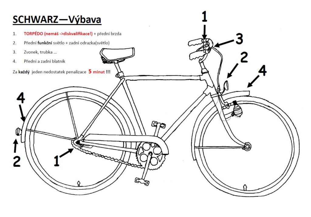 Since old bicycles of the SWARZ type from long-gone times have started to appear, equipped with original gear systems and other mechanical wonders, we decided to admit such bicycles to the event. However, these bikes will receive a 30-minute penalty, so that the originally announced SWARZ – torpedo category is affected as little as possible. The possible assessment of the historical authenticity and design is left to Hillo’s helpers during the technical inspection of the bikes.